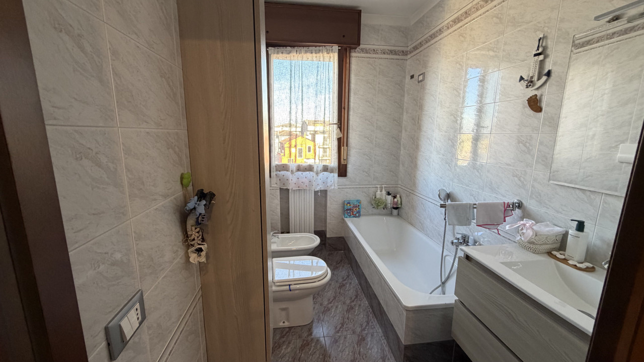 L'appartamento si compone di tre camere da letto spaziose, perfette per garantire privacy e comfort a tutti i membri della famiglia. I due bagni moderni offrono praticità e funzionalità, mentre la cucina separata abitabile rappresenta il cuore della casa, dove poter trascorrere momenti conviviali.
