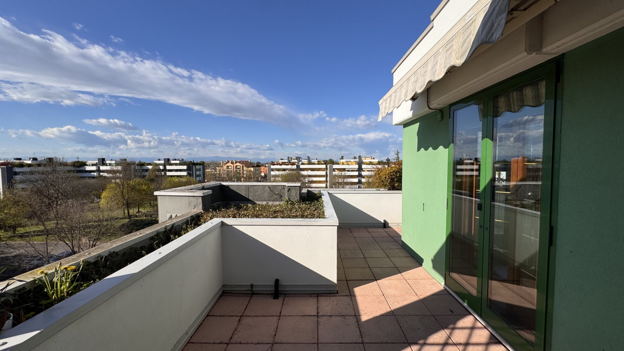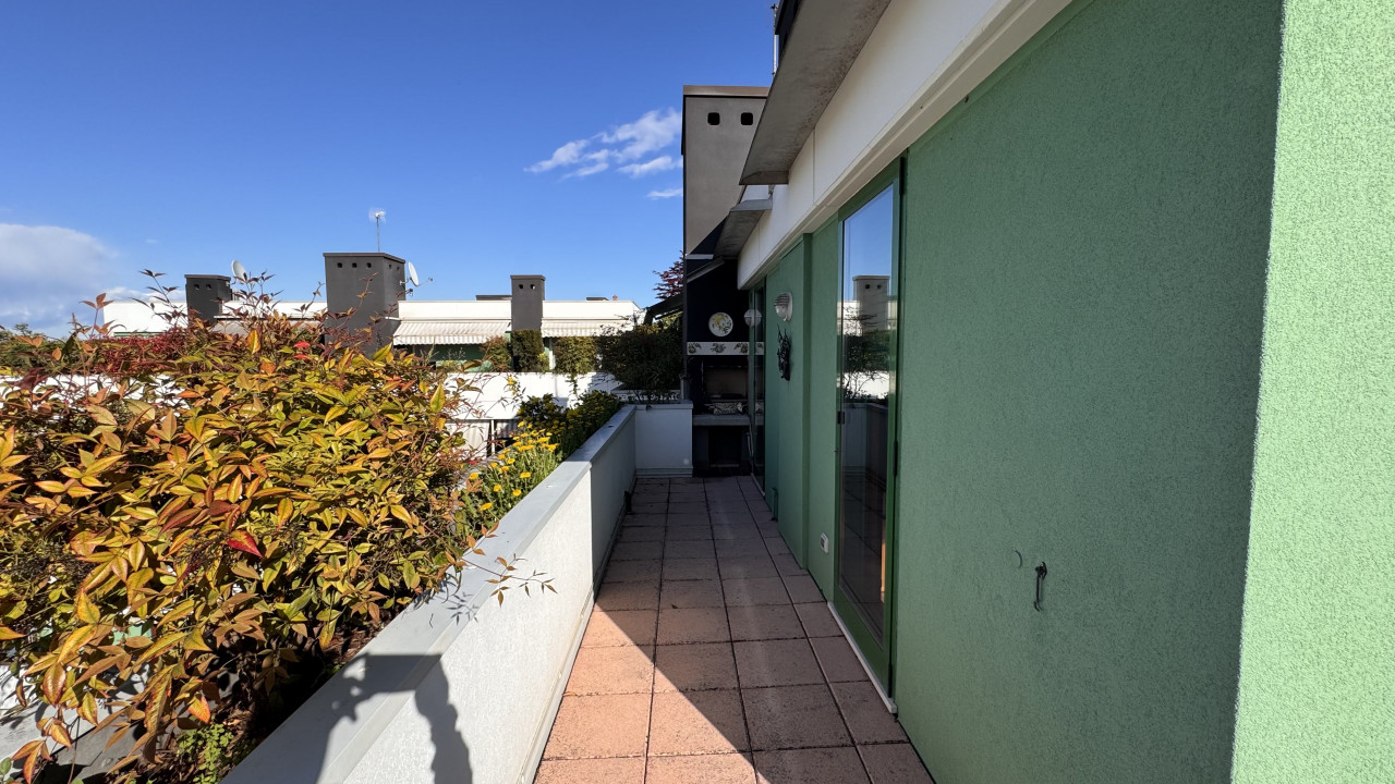 Un altro punto forte della proprietà è la magnifica terrazza privata di circa 60 mq: qui troverete capienti fioriere dotate d'impianto d'irrigazione e un caminetto barbecue ideale per cene all’aperto durante le sere estive.